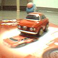 ![]() 正面(斜め上)、側面、裏面。 後ろに『ウィリー用 10円玉ハサミ』 がくっついているのは、やっぱチョロQってところです。 しかし、そこにしっかり『CG』と『ALFAのマーク』が付いているのです。 ![]() こちらが『ストラダーレ(公道用=市販バージョン)』。 しっかり銀バンパーに段付き。 細かいところまでよくできている。 ![]() そしてこっちが『コルサ(競技用=レーシングバージョン)』。 バンパーが無くなって、ラジエターの下に追加エアインテークが付く。 ペイント、ステッカーもばっちり。 そして気になる『走り!!』ですが.....それはもう チョロQそのものです.....。 『ぎゅるるるるぅぅぅぅぅ』 ← ゼンマイの音 いゃー、童心に返ります。 しかし、部屋が狭いので、壁に激突させないココロ配りが必要です。 社の40周年記念にチョロQ。 この選択、自動車雑誌の会社だからというのを差し引いても、すばらしい。 その洒落っ気に脱帽です。 2002/09/03