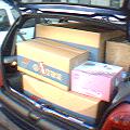 ![]() 『天使』の後ろの席をたたんで、『フルフラット』にして詰め込んだ。 結構積めるモンです。 でも2回かかってしまいました。 『天使』の『フルフラット』、あまりお勧めできません。 フルフラットにするため、前席をカナリ前に出さないとだめ。 背の低い私でさえ、膝がハンドルに当たります。 荷物の運び出し/運び込みですが、運び出しの方が断然疲れたな。 寮は3階で、引越し先は1階ってのが大きいね。 このクソ暑い中、ほんとに死ぬかと思った.....。 ![]() これが運んだ荷物。 ダンボール7箱にカラーボックス4箱。 これに布団が追加されます。 1ボックスのワゴンとかなら全部積めそうね。 こう見ると、そんな多くないんだけどね。 でも、運ぶのカナリ大変です。 自分はそんな『荷物持ち』じゃないと思ってたんだけどね。 部屋はこんな感じ。
